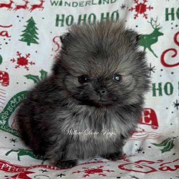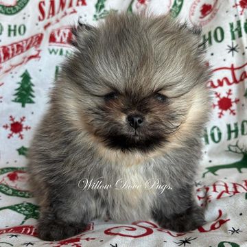 VIDEO. SOOOOOO little!! Purebred Pomeranian from imported champion sired parents. Paisley has small parents and she's currently charting to be just 3 pounds. She is not a runt! She's genetically smaller. Paisley's color is orange sable. She will be a beautiful orange with hints of golden brown and black streaks. Paisley will have a very short muzzle, round head, and compact body! So far she is spunky, curious, kissy and super friendly. Paisley should be ready Jan 18th.
